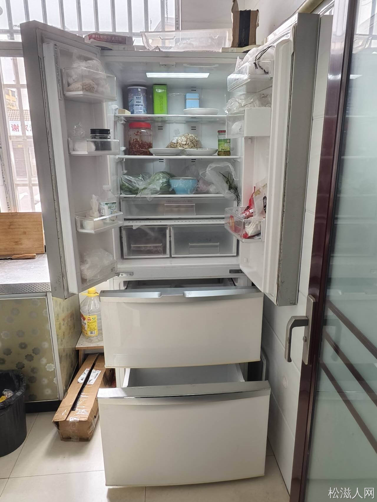 美菱对开门智能冰箱,型号:雅典娜BCD-350WT。尺寸:66x68x180厘米。风冷无霜冰箱。正在使用中。各功能正常,制冷效果好,大品牌质量好。780元出售。