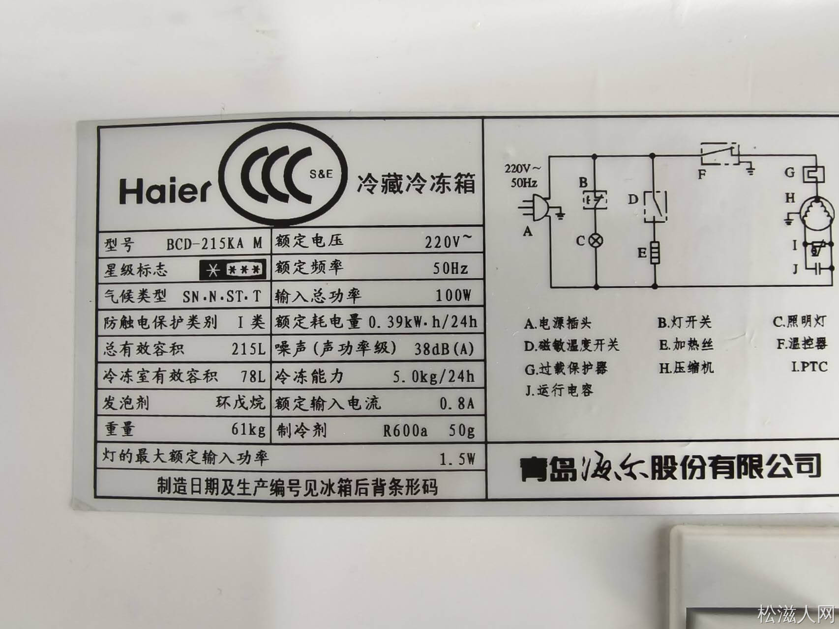 海尔冰箱出售,型号:BCD-215KA, 尺寸:55x58x168厘米。成色很好,一级能效一天一夜0.39度电。各功能正常,制冷效果好,大品牌质量好。550元出售。松滋市飞利浦大道附近,13197482303
